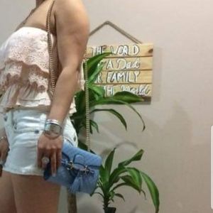 I wear this once over the summer nice small cute baby blue leather Gucci crossbody/should bag
