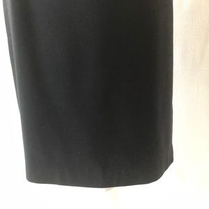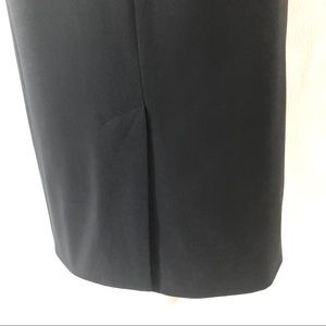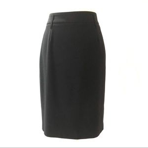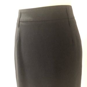 Excellent condition. Black stretch pencil skirt. 1.5” waistband with 2” belt loops. Back zipper with two hook and eye closures. Some of the Black has worn off the zipper pull. Fully lined. 7” back vent. Size 2. Hits around the knee. 92% polyester, 33% rayon, 5% spandex. Dry Clean Only. Waist about 28”, hips about 37”, about 22.75” long. M414