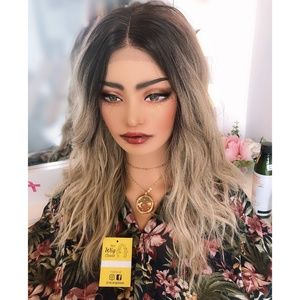 Beautiful dark roots and ash blonde ombre Lace Front Wig. Made with heat resistant synthetic fibers so the hair can be styled with a curling iron or flat iron under 300F° degree. The cap is adjustable for easy wear. The hair is partially hand-knotted strand by strand onto the lace portion which mimics the look of a natural scalp and is also more comfortable and Breathable.