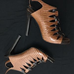 Proenza Schouler 100% Leather Cognac Lizard Peep-toe Sandals