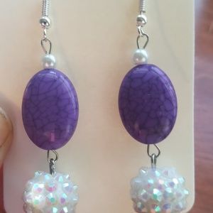 💜Purple Stone// White Disco ball💃// Earrings💎