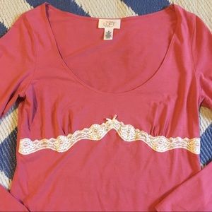 Gorgeous lace trimmed pink long sleeved sleep shirt from Ann Taylor Loft.