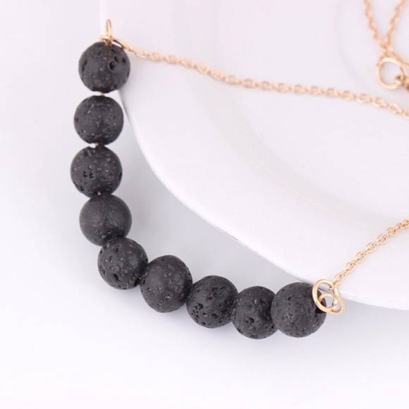 Brand new with tags 'Fire-Born' Lava Stone Beaded Gold Chain Necklace. Real lava stone charcoal/black beads on a gold alloy chain. Adjustable length (approximately 22 inches at shortest length).