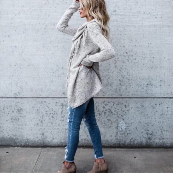 1 Left! Grey Poncho Cardigan w Fringe Hem