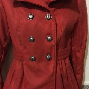 Red~orange Celebrity Pink pea coat with hood