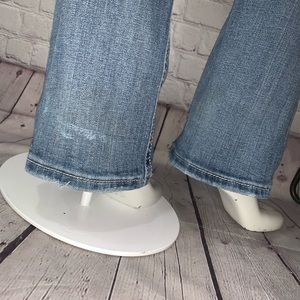 Miss Me’s style JO5450B in color Med 70. Size 27. Measurements when laid out: waist 28,” inseam 33,” front rise 8,” hips 36,” knees 7.5,” bottom hems 8.5.”