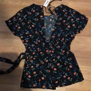 Black floral short slit sleeve romper