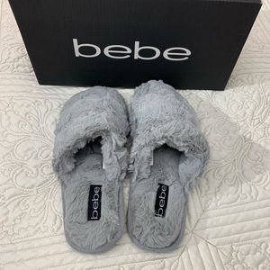NWB BEBE GRAY FAUX FUR SLIPPERS