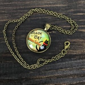 “Black Cat Fortune Telling Game” Charm is under “Domed Glass”. Comes on a Bronze Colored Chain That Hangs down about 10” (Chain Measured in Half).