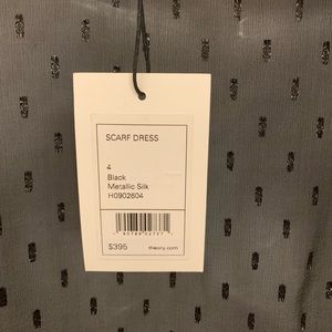 A dotted, metallic jacquard adorns this chiffon shift, fashioned with a drapey scarf flowing along the V-neck. Sheer, doesn't include the black slip.