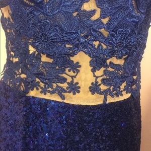 *Ths stunning royal blue sleeveless crochet appliqué & sequins dress has lots of detail with the lined beautiful bottom with sequins, the mesh under the appliqué on the top part of the dress & the hidden back zipper closure