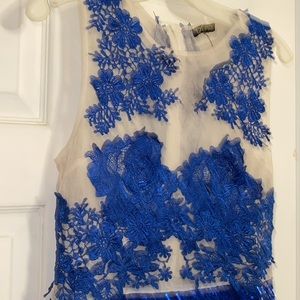 ❌DONATED❌Royal Blue Crochet Appliqué Sequins Mesh Lined Mini Dress