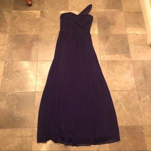 Purple prom dress by Blondie Nites. Worn once and in great used condition. There is a small hole pictured, but it is at the bottom of the dress and unnoticeable once the dress is on.