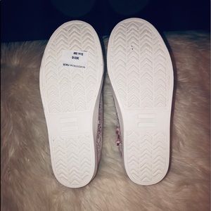 Stylish pink crackled foil low-top sneakers with velour laces