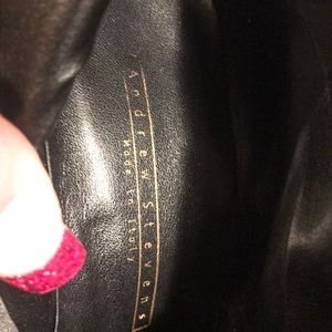 So stunning ...Andrew Stevens boots made in Italy. Solid black leather with pointed toe. A ruffle and 5 buttons down one side, zipper on the inner from top to bottom . Stiletto heel 3.75inch. Perfect for the professional or just a perfect start to a girls night out!