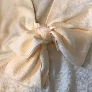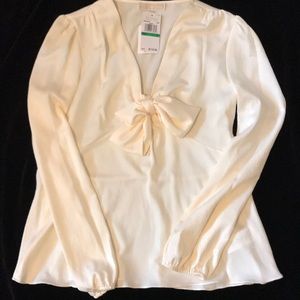 This blouse is so cute and stylish it could be worn with a black pencil skirt or black pants for office or just for jeans for a casual look.Deep V neck with the bow at the bottom of the deep V.