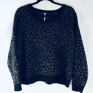 Free People Leopard Print Loose Fit cozy Crew Neck Sweater in Black and Brown ladies size medium