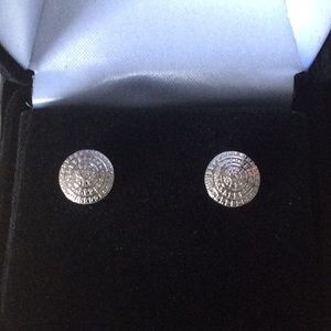 Diamond Earrings. They are a sterling silver platform with a spiral pattern and small diamonds giving it extra dimension. The platform is surrounded by a scroll of Sterling Silver. So elegant. Will come w the Diamond Warranty paperwork, just get them inspected every 6 mos and Kay’s or another affiliated store n if u ever lose a diamond it will be replaced for free