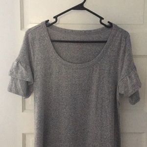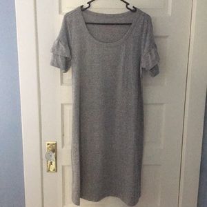 EUC, barely worn with no marks or flaws. Comfortable and stylish and can work for pregnancy and postpartum! Light gray color with ruffled sleeves. Hits right below the knee.