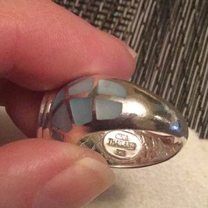 Sterling Silver Blue Topaz with inlaid MOP ring