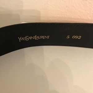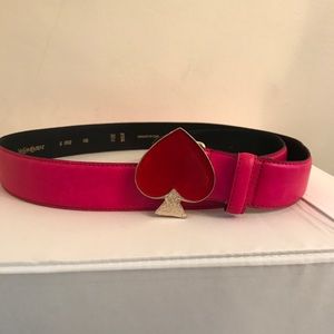 Collectible YSL woman’s belt. Fuschia leather with gold red enamel buckle. Made in France. 44 inches long.