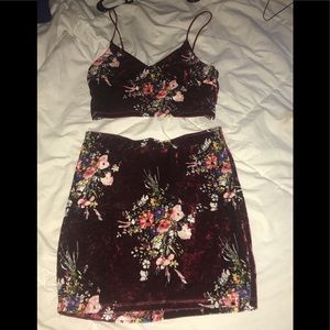 Only worn once! This set is perfect for anything and everything!! It can be dresses up with some heels or dresses down with some sandals anyway you wear it it’s cute!! It’s red velvet with beautiful flowers!!
