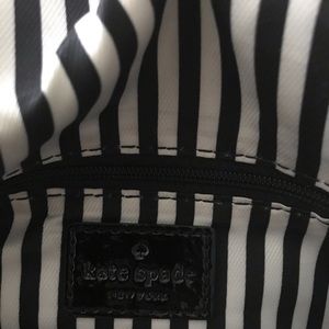 Super soft, unique Kate spade ♠️ bag. Cool black and white stripe inside. Makeup stains inside pictured. Brown dust bag included. Nice silver twist latch. Worn once. Smoke free home. Offers welcome!!!