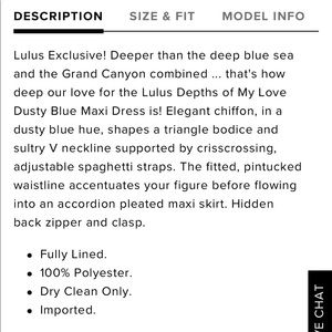lulus dusty blue maxi. it is sold out online. only worn once for a wedding. it has already been dry cleaned. perfect for prom and wedding!!