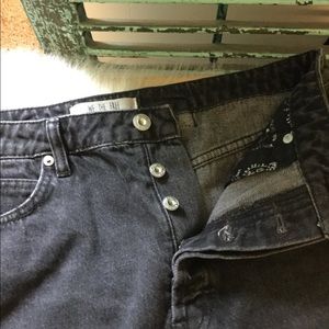 A buckled back yoke lends signature cool-girl style to this Free People mini skirt in whiskered and faded cotton denim.