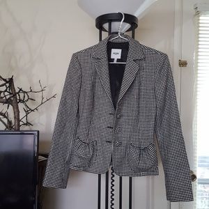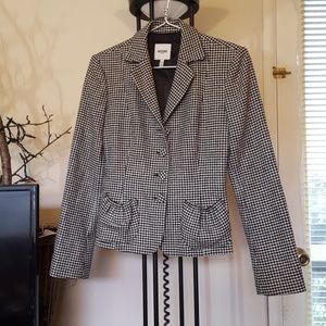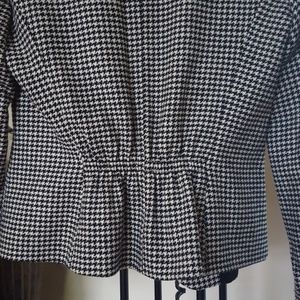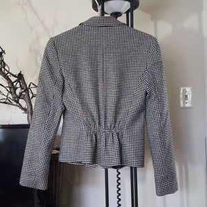 Moschino Jeans vintage jacket. Size 6. Two front pockets, 4 fabric buttons, gathered back. Wool blend. Perfect for a vintage look. In very good condition. Comes with an extra button.