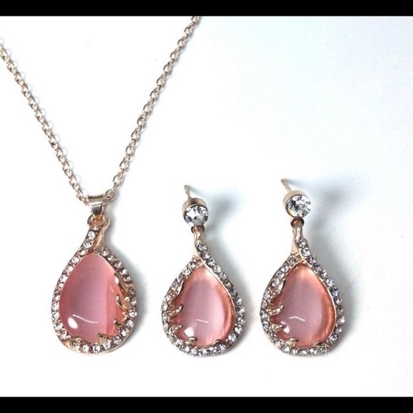 NEW Pink Opal Water Drop Necklace & Earring Set