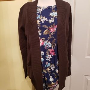 A wardrobe staple. Long sleeve rib banded cardigan with pockets. Open front. Super soft and comfortable. 65% polyester 33% rayon 2% spandex. Does run a little small.