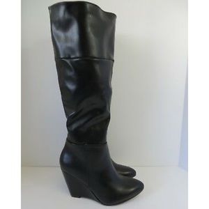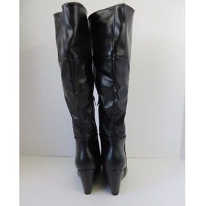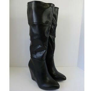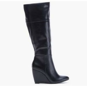 Wedge riding boots look polished with skinny jeans, layered over leggings for a casual look, or worn with a dress and tights