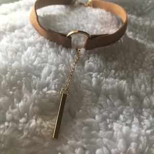 Brand new with tags 'Promises' Gold Bar Light Leather Choker Necklace. Adjustable length.