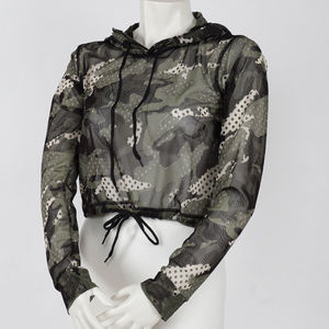 So cute and comfortable brand new designed in USA made in Europe this sheer hoodie will easily become your favorite top during summer workouts or chilly days. Ones folded doesn't take a lot of space so you can carry it in you four purse. Perfect over sports bra for gym, yoga or casual wear. Very unique look.