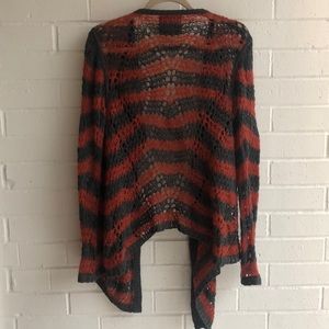Anthropologie Guinevere loose striped cardigan in orange and gray. Open knit with collar button. Size and care tag is missing but would fit a small/ medium