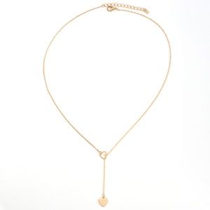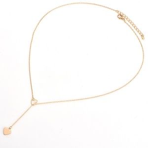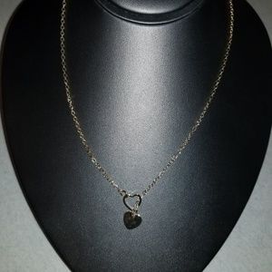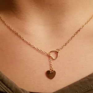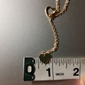 Adorable necklace with a solid heart and an open heart. The solid gold heart hangs through the open heart.