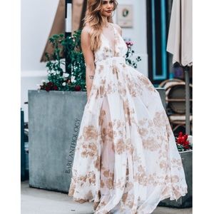 💜NWT Stunning Tulle/Beige Velvet Maxi