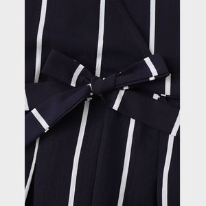 Vertical Striped Surplice V-Neck Tie Belt Romper