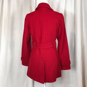 Calvin Klein Double Breasted Belted Peacoat. Features side pockets, double breasted buttons up front, belt.