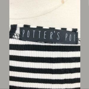 Potters Pot Stretch Knit Dress Size L Striped T-shirt Black & White