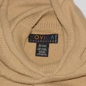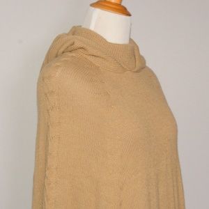 “A cable stitch punctuates this classic poncho. Featuring an attached hood, the versatile wrap is lightweight but warm. Alfredo Falcón knits the pieces of a luxurious alpaca blend, joining them with crochet."