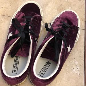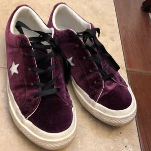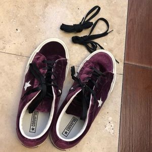 Converse All Star Velour Girls shoes size US3. Comes with regular and satin like laces. Worn only twice. Great condition.