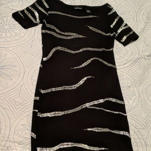 Gently worn (used only once!). Long-sleeve black dress with silver beading. Very form fitting and flattering. Size small. Comes from a non-smoking household.