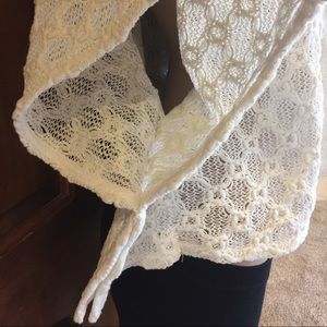 ❌SOLD!❌ Forever 21 Boho Lacey Crochet Ivory Cropped Poncho Sweater S Festival