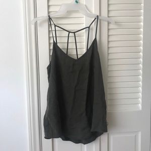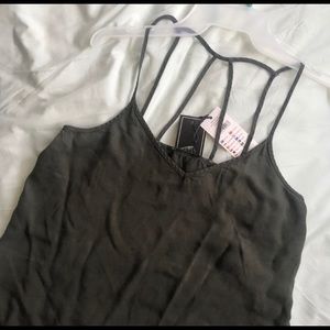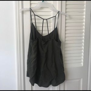 Heavy weight for a tank top. Color is dark Khaki green and is a little more green than what it looks like in the photos.
