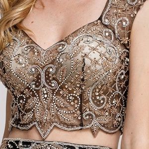EVENING PROM 2 PC GLITTER BEADED DRESS BY AMELIA COUTURE.