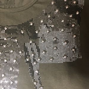 Men's Elephant 🐘 t-shirt. It's a mosaic picture made of metal dots, and skull heads. The shirt is an olive color. Size large. Real good quality. New with tags.