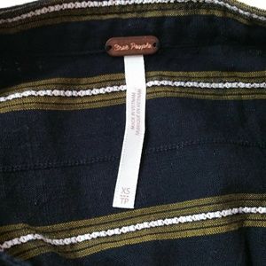Free People Womens Top Black With Stripes Pleated