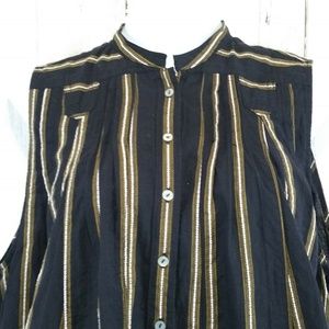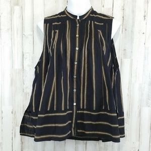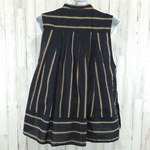 Free People Womens Top Black With Stripes Mandarin Collar Sleeveless Pleated
